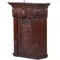 Klein wandkastje uit de 17 e eeuw met aanpassingen en veranderingen van latere eeuwen. De stijlen met cannelures, het middenpaneel met steekwerk, de bolle fries met gestoken kieviten langs een bokaal en bladmotieven. Op de regel daaronder motieven van ebbenhout.