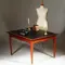 Hollandse 18e eeuwse werktafel Louis Seize ingelegd met wasdoek