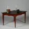 Deze antieke tafel, oorspronkelijk als werktafel gemaakt, een schrijftafel zonder lade, kan tegenwoordig natuurlijk ook goed dienstdoen als eetkamertafel. De kans is groot dat nadat de tafel eind 18 e eeuw gemaakt is, deze het grootste gedeelte van de 19 e eeuw als eetkamertafel gebruikt werd.