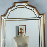 Een tamelijk jong exemplaar, ergens jaren ’50 en niet gemaakt in verguld hout of gips zoals de oudere exemplaren en ook niet in kunststof zoals de nog veel latere maar in gegoten brons. Dit rijke materiaal in een prachtige gepatineerde kleur laat zich schitterende combineren met het sterk lichtbrekende diepe facet.