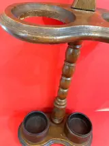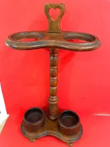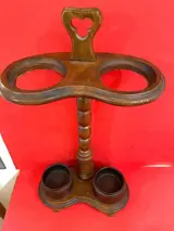 Elegante en charmante wandelstokhouder en/of ook te gebruiken als houten paraplubak met twee ijzeren/gietijzeren schalen