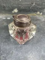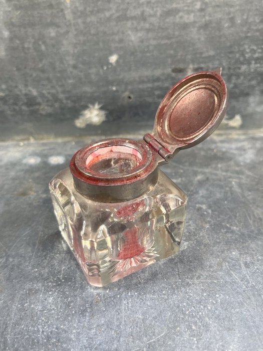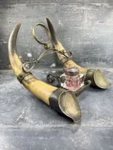 Oude originele en atypische inktpot, Victoriaanse stijl, bestaande uit een zilveren metalen structuur en een paar runderhoorns. Schitterend vreemd en ongebruikelijk object, prachtig krimpwerk.