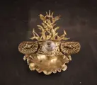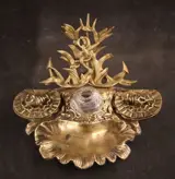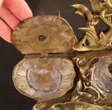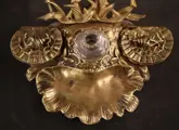 Fraai antiek rijk gedecoreerd bronzen inktstel in rococo stijl met onder andere schelpen en een anker.