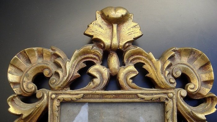 Schitterende bronzen lijst rijkelijk bewerkt met bloemendecoratie en prachtige conservering.