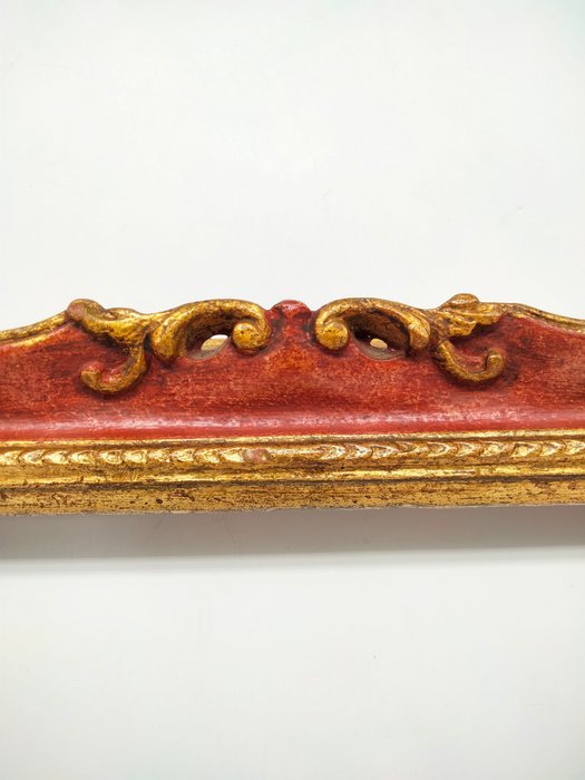 Prachtige ingelegde houten lijst, gepleisterd en bedekt met bladgoud en paars.