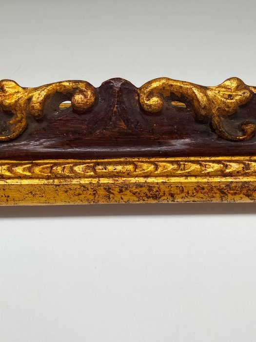 Schitterende ingelegde houten lijst, gepleisterd en bedekt met bladgoud.