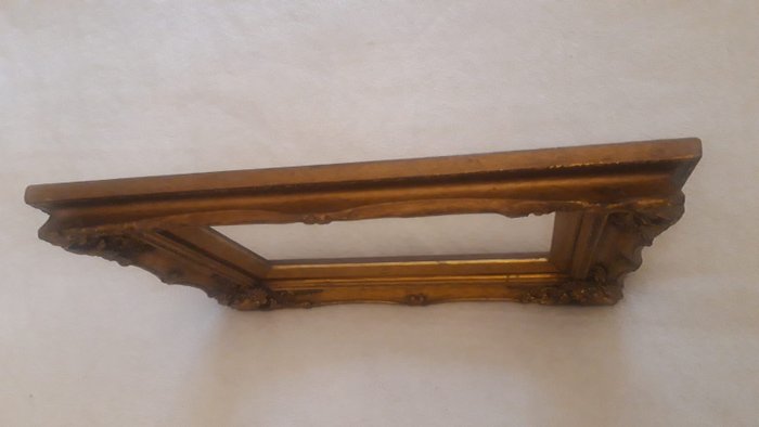 Verfijnde houten lijst met antieke gouden afwerking, in uitstekende staat, behoeft geen restauratie, er kan een tafel van 20x30 cm in.