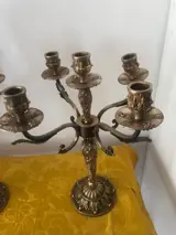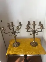 Een prachtig paar prachtig geciseleerde messing 5-vlammige kandelaars.