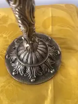 Ze hebben een volledig bewerkte ronde voet van 12 cm breed in de vorm van een koepel waaruit de kolom van de kandelaar oprijst, ook bewerkt met hiëroglifische lijnen die doen denken aan de bladeren. Ze is 17 cm lang.
