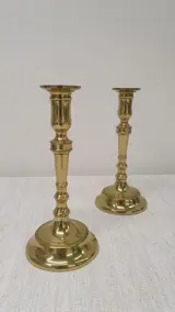 Twee prachtige verguld bronzen kandelaars in zeer goede staat, hoogte 18 cm, diameter 8 cm, worden zorgvuldig verpakt met trackingcode.