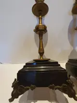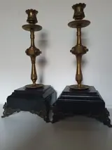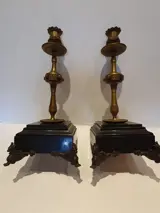 Oud paar bronzen kandelaars met voet van zwart Belgisch marmer.