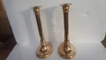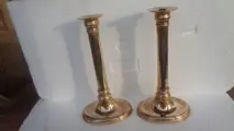 Stel vergulde messing kandelaars uit de restauratie periode in tweeen gegoten de daarna verguld