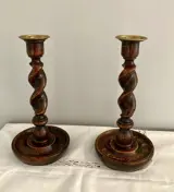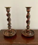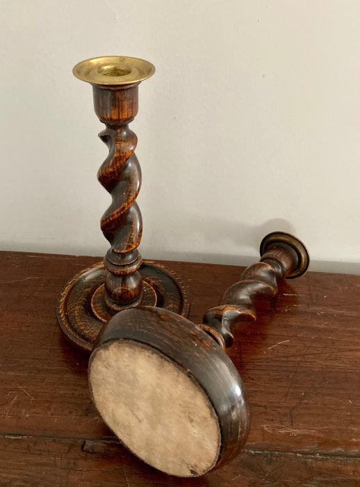 Erg mooie eikenhouten kandelaars uit Engeland. De zo genoemde ‘Barley Twist’ kandelaars.