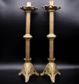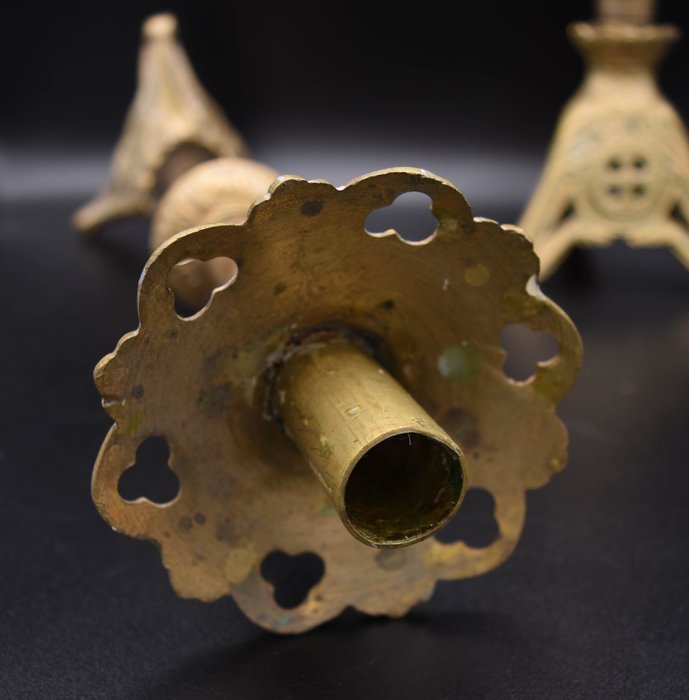 Oud paar bronzen kandelaars.