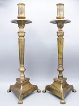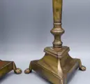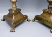 Oude bronzen kandelaars op 3 klauwachtige pootjes.
