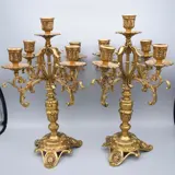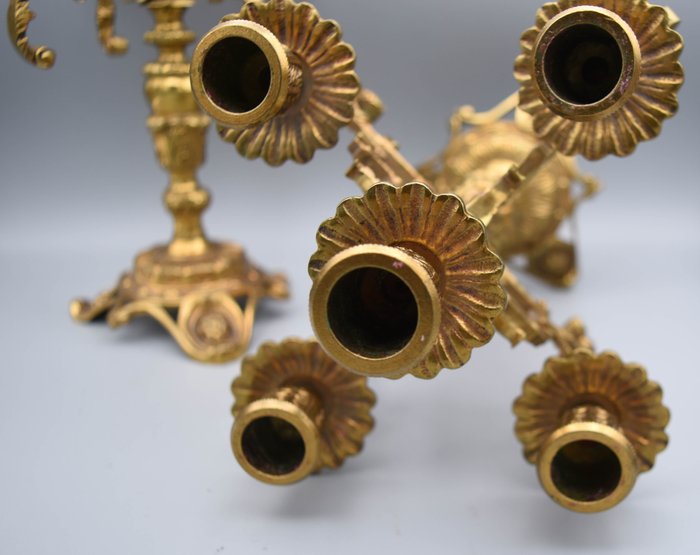 Antieke bronzen kandelaars rijkelijk gedecoreerd - Voor 5 kaarsen.