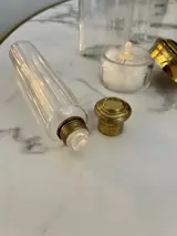 Lange flesbody met schroefdop en originele glazen stop, conditie 1A!