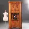 Blonde kersenhouten biedermeier hoekkast met 4 deuren en een klep, het geheel onder een gewelfde kroonlijst met uitkragende hoekjes, in de voet is een verglijkbare sprong verwerkt. Achter de klep met een “soft-open-systeem” een interieur met 6 kleine laden en een 5-tal opbergvakken, twee daarvan groot genoeg om een flinke laptop (40 X 32) te kunnen herbergen.
