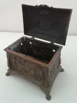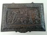 Wierookdoos wordt verondersteld van koper, messing en tin te zijn met bas-reliëf vakmanschap met scènes van het dagelijkse landwerk aan elke kant, inclusief het bovenste gedeelte.