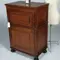 Een klein Hollands eikenhouten tweedeurskastje met achter de bovenste deur een serie van vier tafelzilverladen. In de onderkast een schapje in het midden. Het geheel op 4 gezwarte gedraaide bolpoten en met gepaneelde zijkanten.