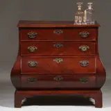 Kleine Haagse commode in mahonie 3-zijdig gebogen met 4 laden