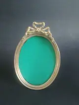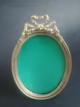 Kleine ovale lijst van verguld brons met daarboven een knoop in Lodewijk XVI-stijl.
