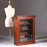 Kleine strakke notenhouten 1-deurs boekenkast of vitrine ca 1865