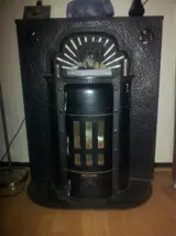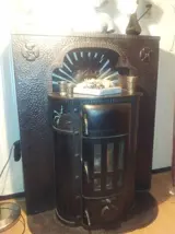 de koop oude gietijzer kolenkachel in goede staat 150 jaar oud met schouw prijs 4000 euro