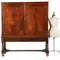Achter de deuren drie kleine fraai laden voor bijvoorbeeld tafelzilver. Onder de deuren een brede verdekte lade.