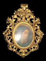 Prachtige "cartoccio" gebeeldhouwde lijst met puur gouden vergulding, in barokstijl.