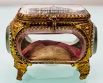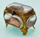 Antieke luxe juwelendoos met vijf kristallen om het in detail te zien en interne pad en messing structuur. In goede staat zoals te zien op de foto's.
