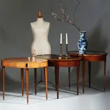 Mahonie Louis Seize stijl theetafel ca 1910 eeuw ingelegd met satijn, hulst en noten