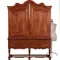 Hollands vroeg 18 e eeuws kruisvoetkabinet op sluierpoten, onder een gewelfde kroonlijst, onder de eveneens gewelfde deuren een onderkast met 3 laden, het geheel op 5 poten, onderling verbonden met geslingerde regels, de achterste recht. De voorste regels met een console voor om twee Chinese kommen te pronk te zetten.