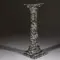 Hollandse houten zuil met gedraaide en gestoken elementen, de stam met cannelures. De ondergrond is zwart met daarop een donkergroen met wit geaderde marmering.