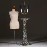 Markante houten zuil groen-wit geaderd op zwarte ondergrond ca 1900