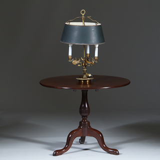 Ronde massief mahonie Georgian tilttoptable op driesprant van uitgebogen poten die eindigen in een zogenaamde pad feet. Het bovenblad is prachtig getekend en heeft een fraaie oude kleur.