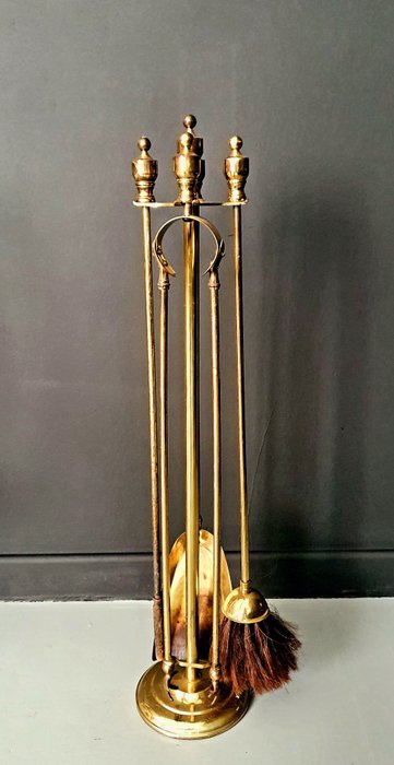 Zeer mooie volledig messing schouwset hoogte 65cm