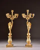 Mooie set figurale 5-armige kandelaars (2) - Empire - Brons (verguld) - Begin 19e eeuw