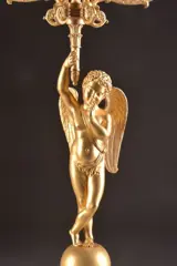 Set grote vergulde bronzen 5-armige kandelaars met twee prachtige cupido's.