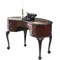 Mahoniehouten niervormig Chippendale stijl bureau ingelegd met fraai doorleefd leer, de bladrand rondom met een klein steekwerkje afgewerkt. Aan de zijkanten elk twee bol gebogen laden, een hol gebogen lade in het midden. Het geheel staand op 4 gebogen poten eindigend in een klauwpootje rusten op een bol.