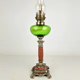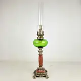 Elegant French oil lamp finished with green glass and marble base Ca. 1880.