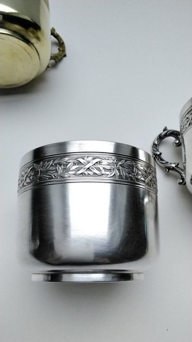 oude metalen bekers met punch (3) - Verzilverd - Eind 19e eeuw