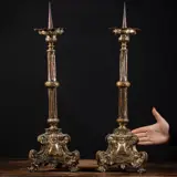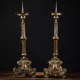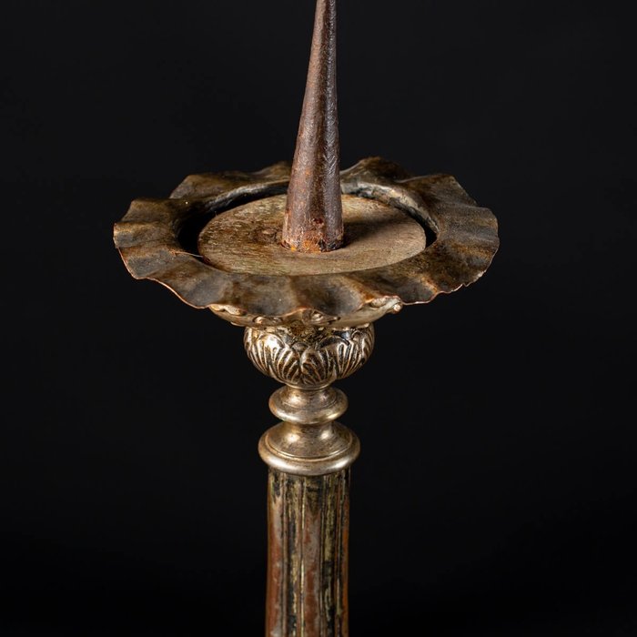 Een paar koperen en houten Franse kandelaars uit de late 18e eeuw
