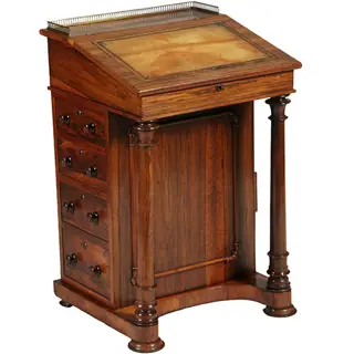 Palissander Davenport met zuilen, klein geheim vakje en uitklapbare inktpothouder
