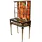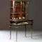 De Bovenkast staat op een vitrinetafel met een omhoog scharnierende klep. Het geheel op vier gedraaide poten met ingelegde messing cannelures.