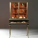 Pianovormige verzamelaars vitrine of display-cabinet in brons met zwart ca 1880