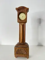 Het betreft hier een porte montre, (Zakhorloge houder) in de vorm van een staande klok.