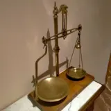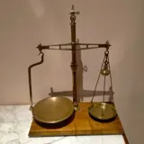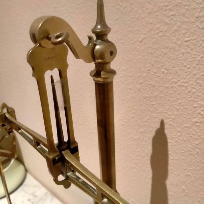 Avery Ltd Birmingham schaal in messing, met mahonie voet. In perfecte staat. Het grote bord heeft een diameter van 22 karaat en het kleine van 14. Prachtig volledig functioneel stuk. Het merk en de klasse zijn gegraveerd op de zijkanten waar de borden aan hangen. Geweldig decoratief object.