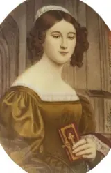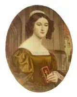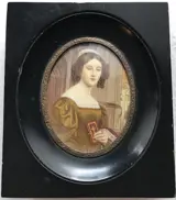 Joseph Karl Stieler (Mainz, 1781 - München, 1858) handgeschilderde miniatuur op olifantenivoor Duitse School 19e eeuw met afbeelding van een half buste portret van Anna Hillmayer met gebedenboek. Gesigneerd Stieler aan de rechterkant..