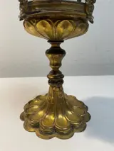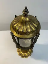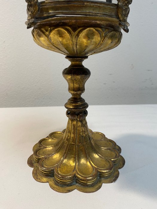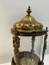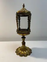Antiek Italiaans reliekschrijn van verguld koper en kristal.